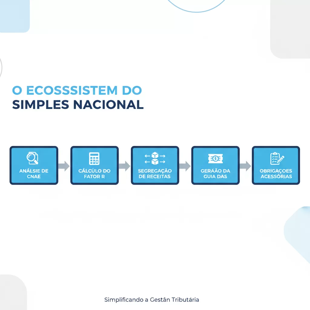 A gestão do Simples Nacional por uma empresa de contabilidade especializada é um processo metodológico e rigoroso, que se desdobra em várias etapas críticas, muito distantes da simples emissão de um documento de arrecadação (DAS). O trabalho começa antes mesmo do enquadramento da empresa no regime e se estende por todo o ciclo de vida do negócio.
