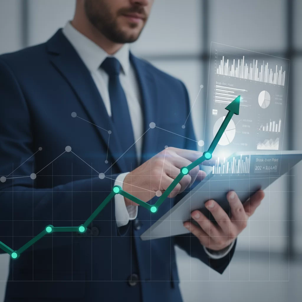 O Ponto de Equilíbrio revela o faturamento mínimo necessário para cobrir todos os custos e despesas, operando no zero a zero. Um cálculo profissional considera não apenas os custos operacionais, mas também a carga tributária incidente sobre o faturamento, os custos financeiros e as depreciações. Saber esse número é vital: ele define a primeira meta de sobrevivência do negócio.